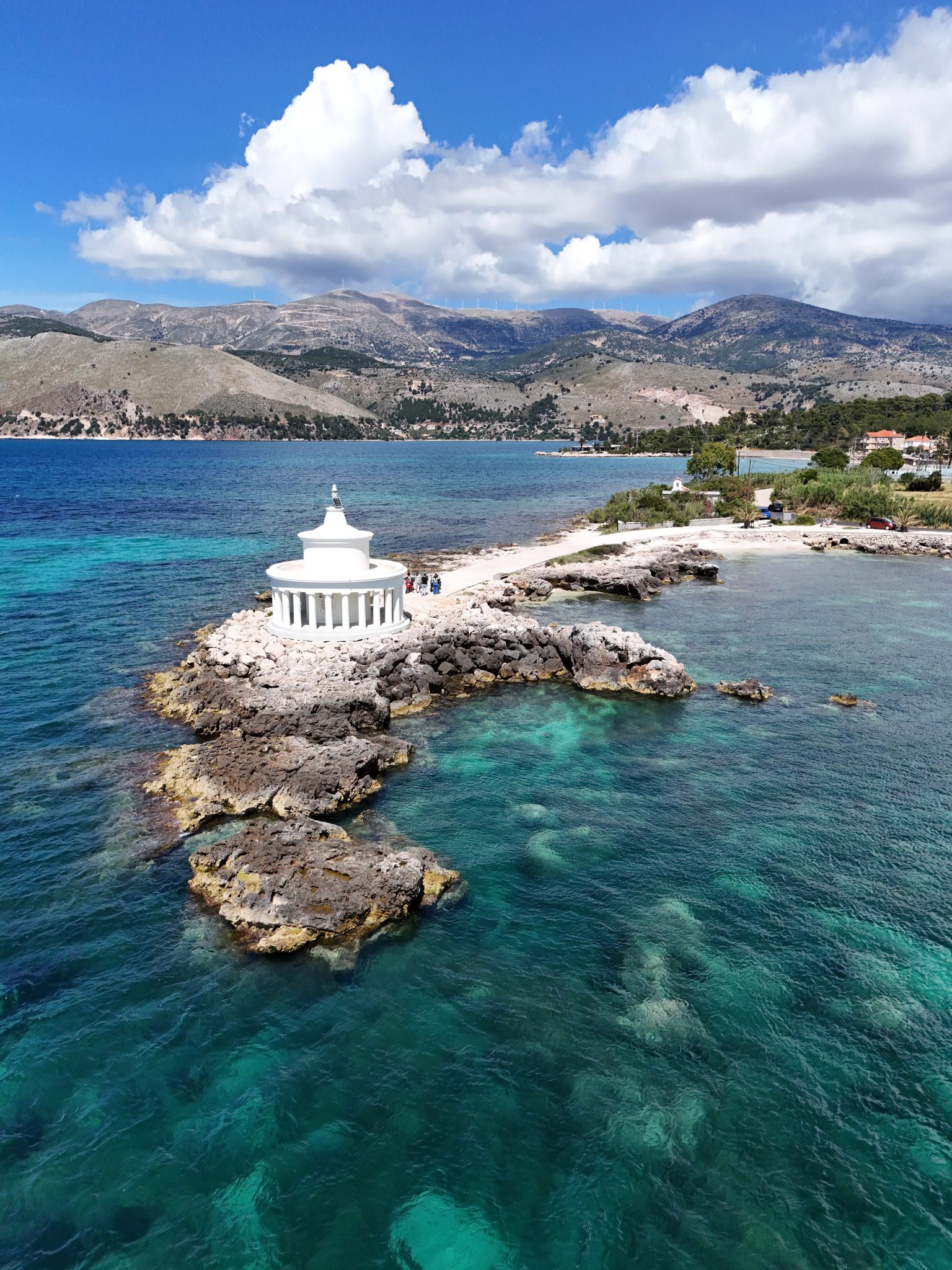 The Fanari of Agioi Theodoroi is one of Kefalonia’s most iconic landmarks, known for its unique circular design with white columns, creating a distinctive seaside setting.